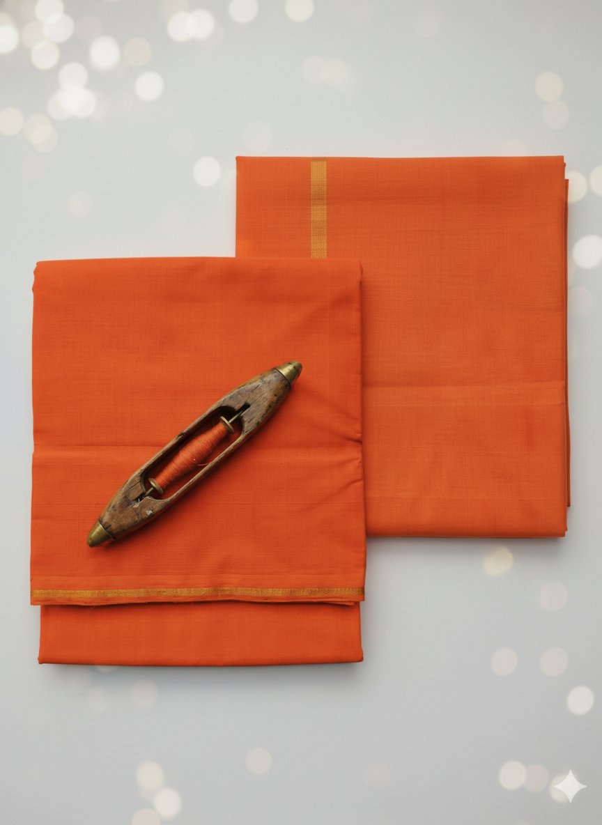 Explore our range of authentic handloom dhotis crafted from 100% cotton in 80x80 and 100x100 counts, blending tradition with comfort.